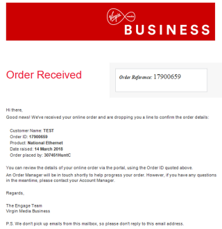Order Received Email: we’ve added more detailed information into this email, so that you have a complete summary of your order, including the install and rental cost, contract term together with the A and B end address details. We’ve included a ‘before’ and ‘after’ example, so that you can clearly see the difference.
